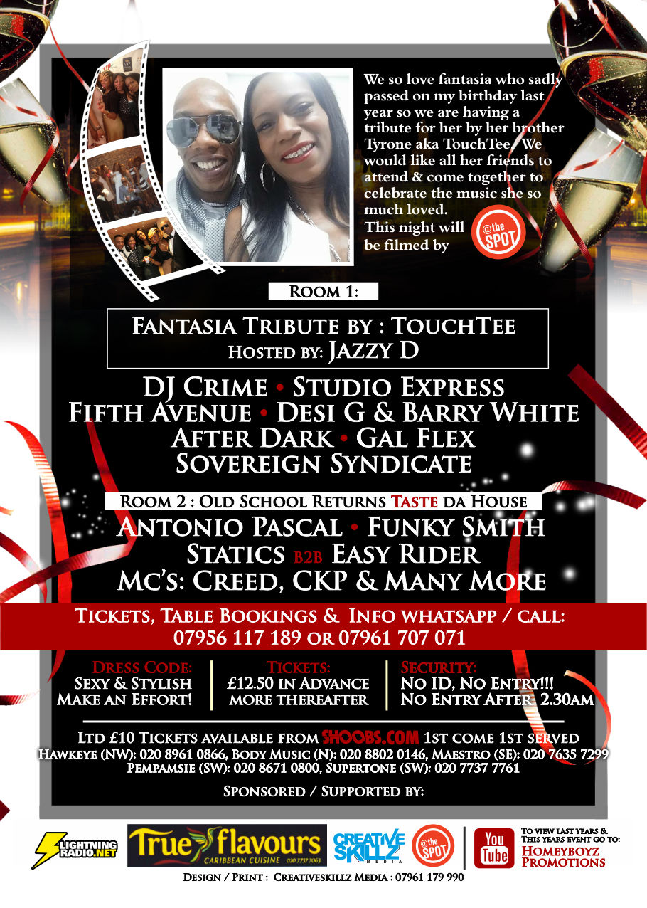 On March 28th will be celebrating JACQUIS 50th birthday at the prestigious U7 LOUNGE near Shorditch just 4 mins away from the landmark head to Dalston direction then look to your left before the hump bridge. On this night it will be nothing but the best DJS in town dropping down some real beats. Djs doing there thing .. New Attraction Studio express Special touch Danny B (perfect gents) Get there early as it starts from 8.00pm-400.am Last entrance. 1.30-200 am. Latest £10.00 tickets MOTD